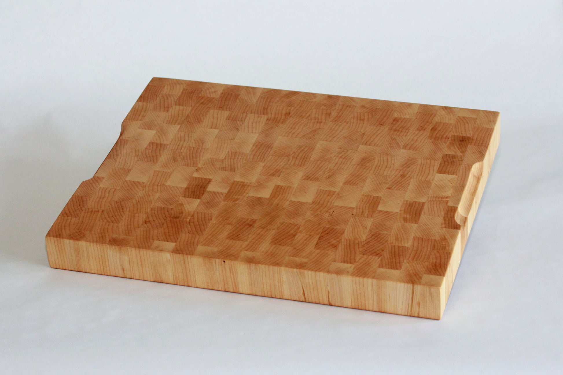 Solid Hard Maple laid in a beautiful brick pattern provides a clean and elegant addition to your kitchen. Not just a piece of art but a functional piece that can be used for cutting, prepping, transferring, and serving. End grain allows knives to slide between the wood fibers causing much less destruction that a typical cutting board. With light maintenance this board will last a lifetime or longer. Made in the USA.